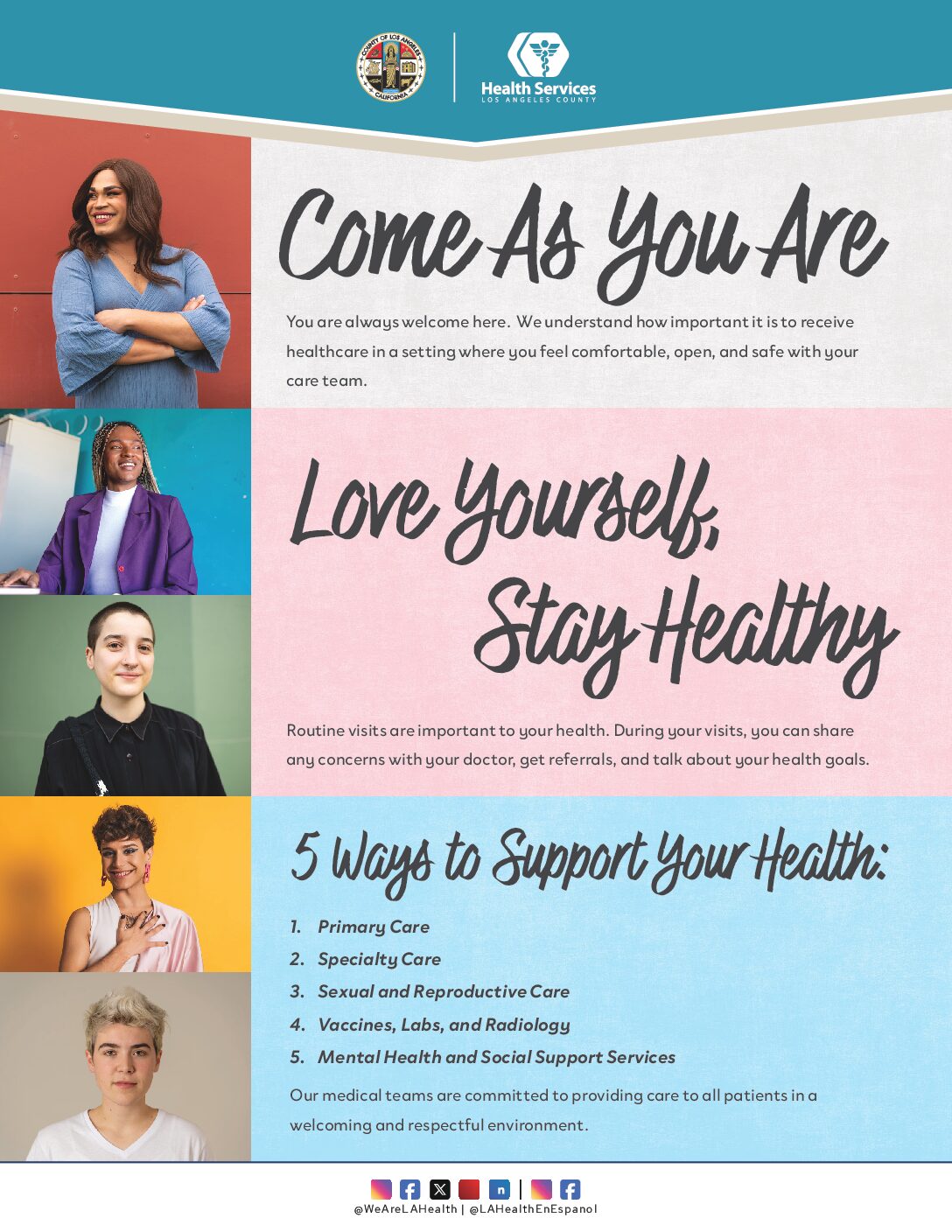 Thank you for choosing LA Health Services as your healthcare provider. We are committed to providing high-quality, compassionate, and inclusive healthcare to our Lesbian, Gay, Bisexual, Transgender, Queer, and Questioning (LGBTQ+) patients and their families.